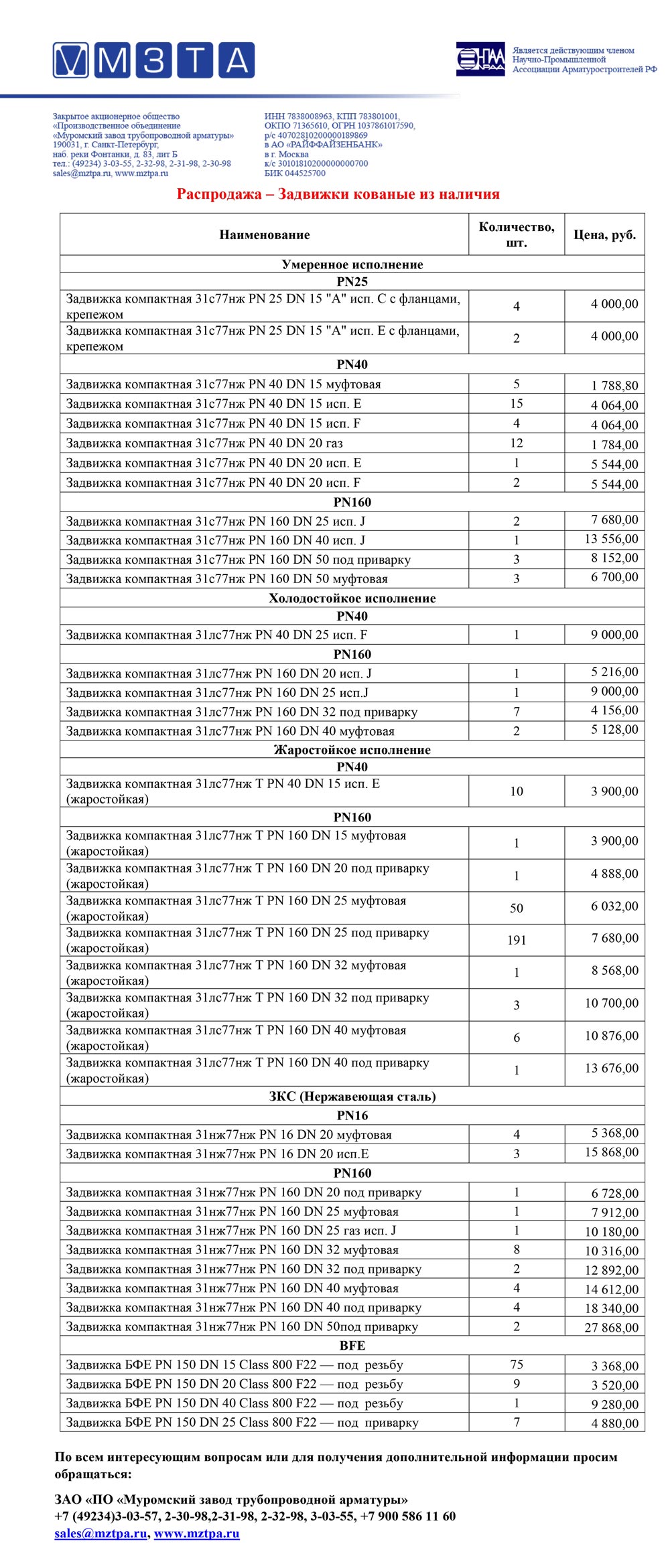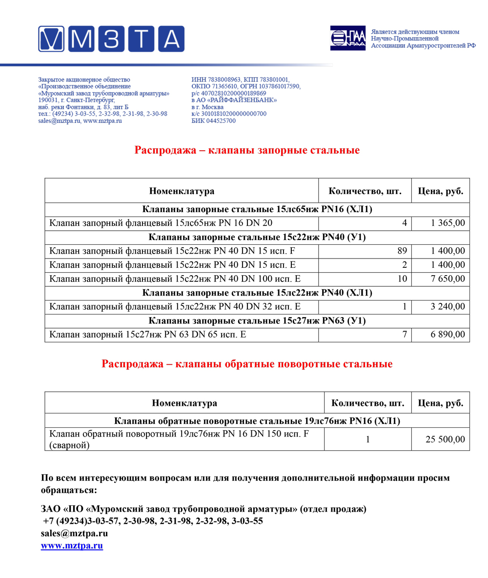 Распродажа складских остатков