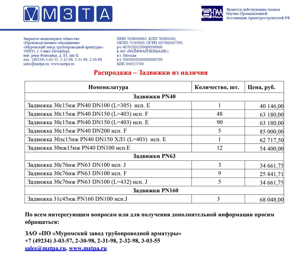 Задвижки (редкие позиции)