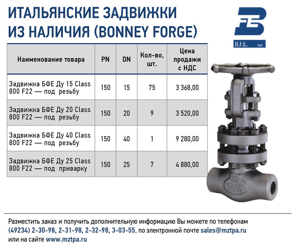 Задвижки кованые Bonney Forge (Италия)