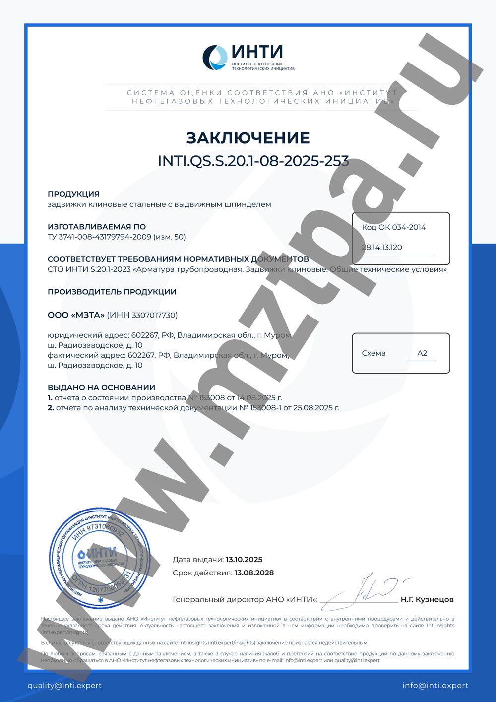 | Заключение по продукции INTI.QS.S.20.1-08-2025-253 | INTI.QS.S.20.1-08-2025-253 |